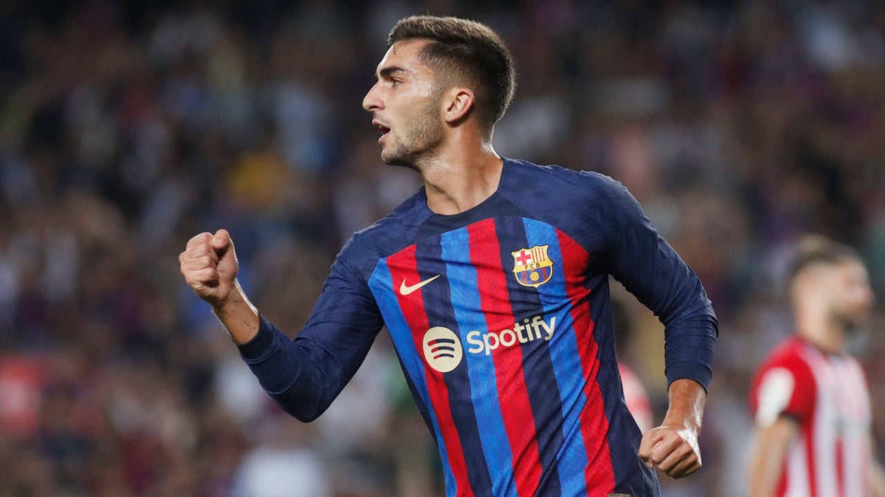 El azulgrana Ferrán Torres celebra un gol con el FC BarcelonaUES