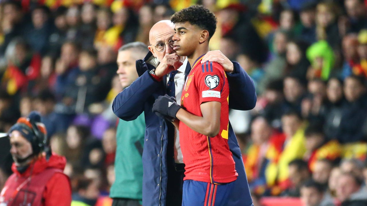Luis de la Fuente dando instrucciones a Lamine YamalCordon Press