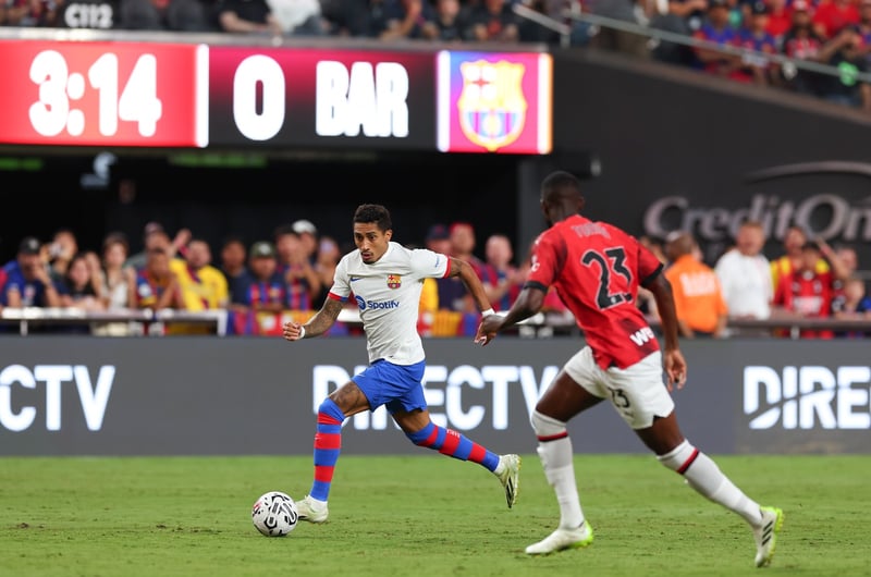 Uno de los focos de la noche estará puesto en Raphinha. El brasileño partirá previsiblemente de inicio ante la ausencia de Ousmane Dembélé. Xavi podría darle las llaves de la banda derecha esta temporada.