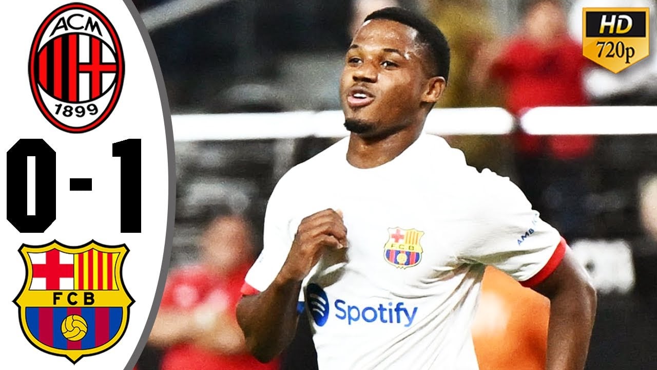 Primera parte muy igualada en cuanto ocasiones. Koundé y Ferrán tuvieron la más clara para el Barça. En el Milan Reijnders y Rafael Leao se toparon con un Iñaki Peña estelar