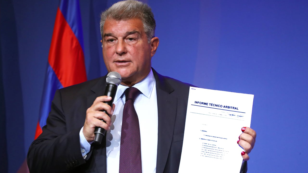 Joan Laporta, explicando los datos del famoso 'caso Negreira'.IMAGO