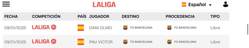 Se esperaba que para este jueves estuvieran listas las nuevas inscripciones de Dani Olmo y Pau Víctor en LaLiga y así se ha cumplido. Después de toda la polémica generada en torno a la cautelar emitida por el CSD al FC Barcelona, ambos jugadores ya podrán estar disponibles para Hansi Flick. El organismo que dirige Javier Tebas finalmente ha acatado las órdenes emitidas por el organismo público, reinscribiendo de nuevo a ambos jugadores en su página oficial.