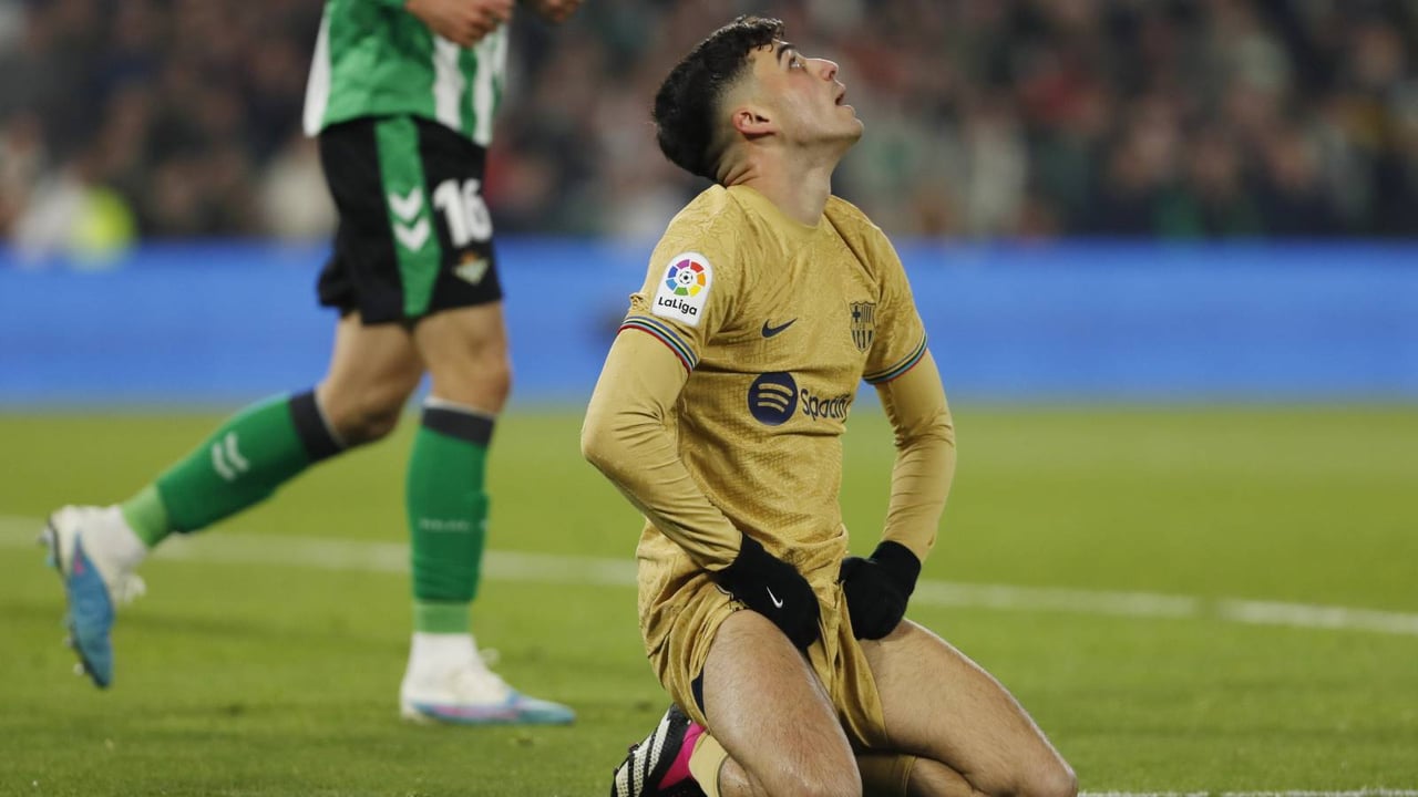 Pedri se lamenta de una ocasión fallada ante el Betis.UES