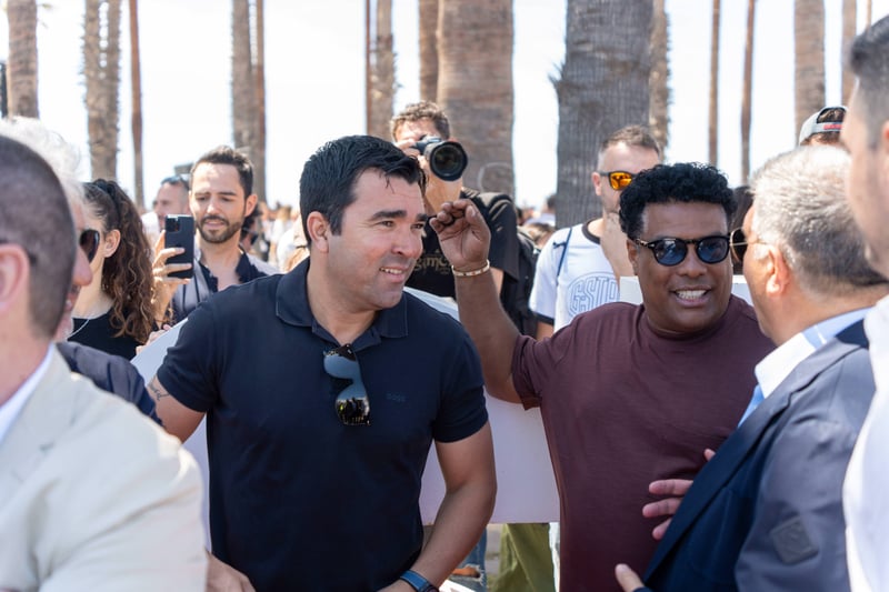 Fue un auténtico baño de masas para Laporta y Ronaldinho pues acudieron una gran cantidad de aficionados que no se quisieron perder el acto y de paso, aprovecharon para pedir a presidente azulgrana el fichaje de uno de los futbolistas más deseados del momento, el de Nico Williams. También estaba por allí el director deportivo, un Deco que a buen seguro tomó buena nota de las demandas de la afición.