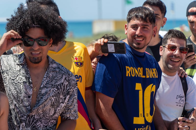 El acto, celebrado a escasos metros de la playa, en la Plaza de las Palmeras de Castelldefels, arrancó con el amistoso abrazo entre los dos protagonistas de la jornada, que fueron vitoreados por centenares de aficionados, mayoritariamente familias y niños.