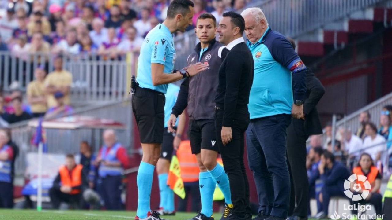 Xavi hablando con Sánchez Martínez durante el partido frente al AtletiLaLiga