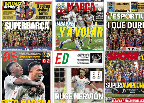 PortadasEl Sevilla revive, el Betis busca la victoria contra el Alavés, el Barcelona Femenino se hace con su sexta Supercopa... así vienen las portadas del domingo 25 de enero de 2026