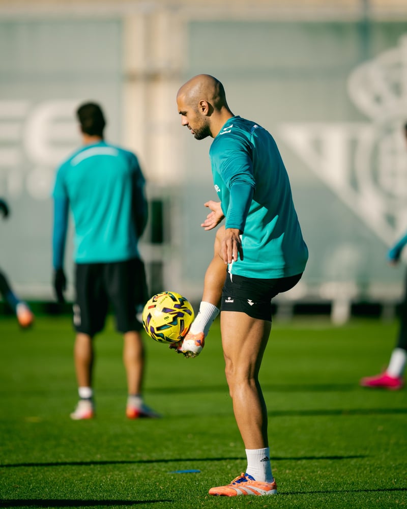 Amrabat también trabajó como uno más en su primer entrenamiento tras el periplo con su selección, por lo que integrará con total seguridad el doble pivote bético contra los de Míchel.