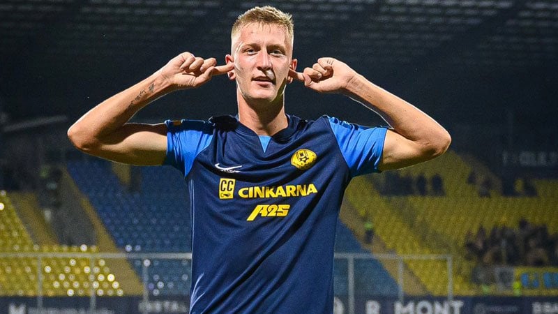 Armandas Kucys celebra un gol con el NK Celje. @NKCelje