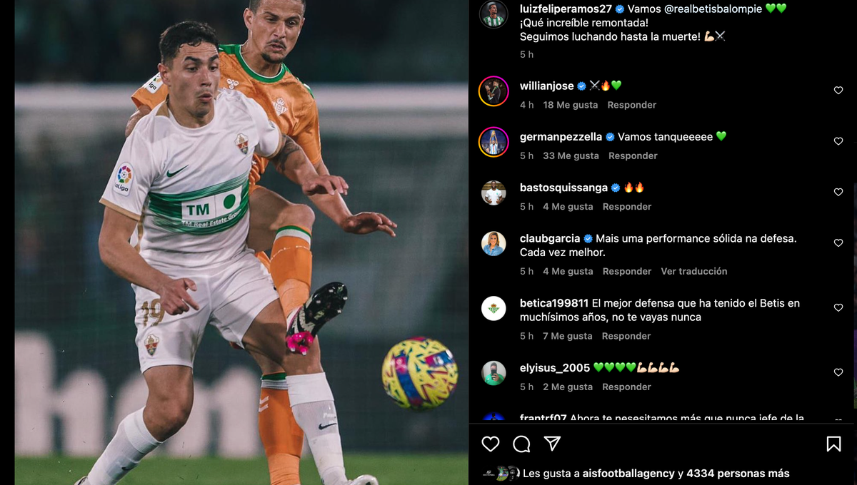 Los cuatro amenazados de cumplir ciclo en el equipo de Pellegrini no vieron amonestación en el Martínez Valero. Uno de ellos, Edgar, porque ni siquiera compareció por lesión, mientras que Guardado, William Carvalho y Luiz Henrique fueron titulares y se volvieron limpios, por lo que, en ese aspecto, sí suponen un alivio para el chileno, que recuperará a Guido, una vez cumplido su partido por idéntico motivo, pero que seguirá pendiente de todas sus líneas durante la semana. En la portería, Rui Silva está tocado; en defensa, podría caer Luiz Felipe, que se retiró con una dolencia muscular que será evaluada este lunes con unas pruebas que determinarán si debe parar de nuevo o no (con Edgar entre algodones, Pezzella y Víctor Ruiz deberían formar en el eje de la zaga); mientras que el centrocampista Canales y el atacante Juan Cruz están prácticamente descartados, salvo milagrosa recuperación del cántabro. Al menos, Borja Iglesias volvió sin problemas y, con un vendaje en la mano derecha operada, está operativo al cien por cien.