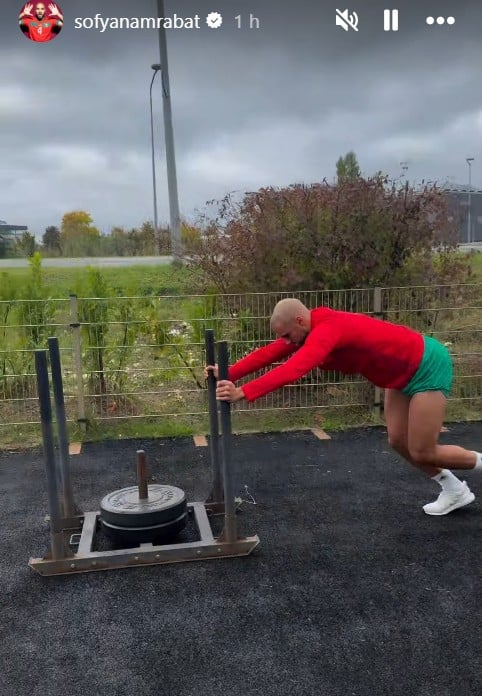 Mientras tanto, Amrabat aprieta en su recuperación durante la concentración con su selección, tal y como se encargó de exhibir a través de una publicación en su perfil de Instagram. Así, el centrocampista subió dos vídeos en su historias en los que realiza varios ejercicios de fuerza y para potenciar la zona afectada, primero empujando y desplazando sobre el suelo una plataforma con un peso considerable y después en una máquina para tomar impulso con la pierna lesionada.