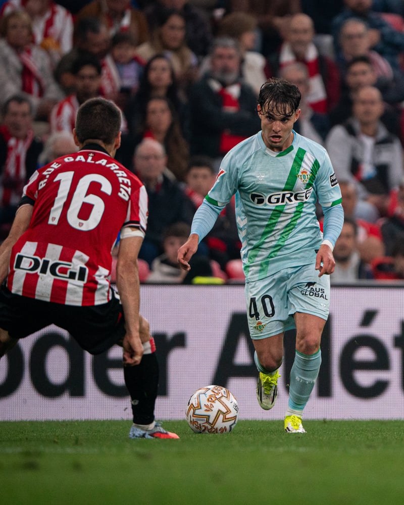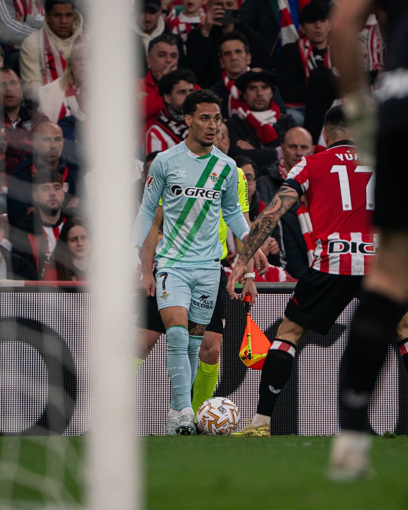 Ángel Ortiz regresa lesionado de San Mamés, tras sufrir una aparatosa caída antes del ecuador del primer tiempo y lastimarse el hombro derecho. Ocurrió en una acción defensiva con Álex Berenguer y, aunque pudo volver al terreno de juego y aguantar hasta el descanso (siendo, además, uno de los más peligrosos del Real Betis en ataque), fue sustituido por Héctor Bellerín a la vuelta de vestuarios. En cierta forma, dio tiempo el de Almendralejo al badalonés para que éste calentara, más allá de que, en cuanto se le enfrió la zona, le fue imposible aguantar el dolor, debiendo ser asistido por los servicios médicos del club verdiblanco.