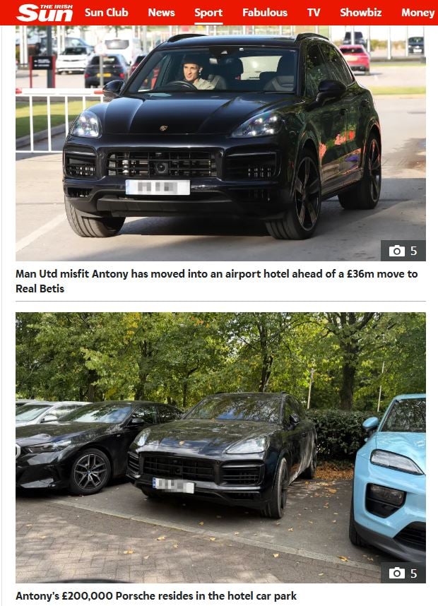 "La paciencia te hace más sabio", ha expresado el extremo en sus redes sociales, emanando optimismo. Con toda la cautela que merece esta información, la llamativa noticia habla de que Real Betis y Manchester United estarían muy cerca de sellar un acuerdo que se cerraría en un montante total de unos 40 millones de euros, entre los 3,5 millones de remuneración por la cesión hasta el final de la presente temporada 2025/2026 y una opción de compra con los 37 millones restantes. La fórmula, más verosímil a priori que apunta ABC es la de una copropiedad. "Antony y su familia están ahora encerrados en un hotel, a menos de cinco minutos del aeropuerto de Mánchester, con su Porsche de 200.000 libras aparcado en el aparcamiento", añade el periódico amarillista, con fotos que lo atestiguan. Hay que seguir esperando un poco más.
