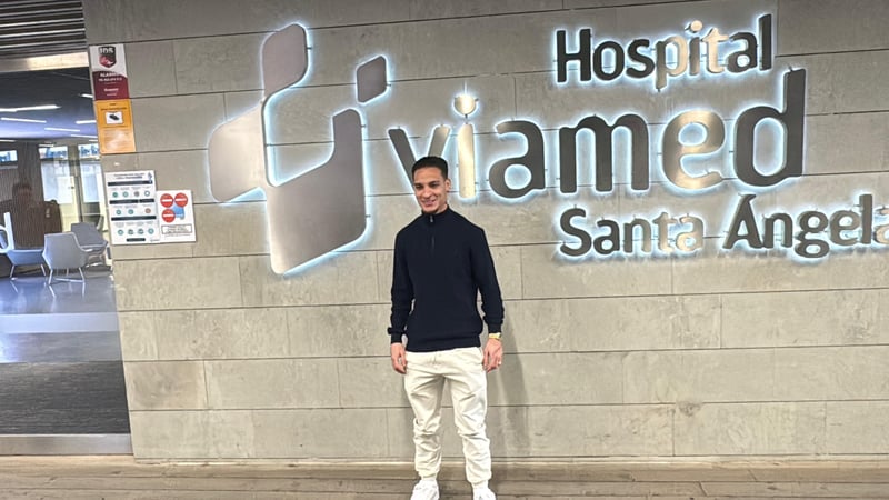 A eso de las 09:45 horas estaba citado en el Hospital Viamed Santa Ángela de la Cruz, ubicado en el barrio de Bellavista, para someterse a la minuciosa revisión de los doctores antes de dirigirse a las oficinas de la entidad de La Palmera para estampar su firma en un contrato hasta el próximo 30 de junio. Llegó con una media hora de retraso, pero posó ante los numerosos medios de comunicación que le esperaban con una elocuente sonrisa. "Muy feliz", han sido sus primeras palabras como bético. "Estoy preparado", ha añadido antes de volver al interior de la clínica.