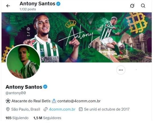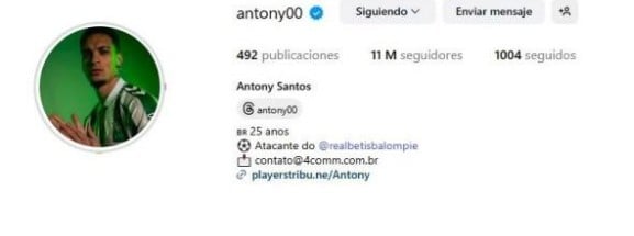 No en vano, este lunes concluyó oficialmente su cesión y Antony, dentro de su estrategia para presionar al Manchester, se resiste a aceptarlo y todavía se considera futbolista del Betis, o así lo expresa al menos en sus redes sociales, en las que no ha cambiado su biografía.