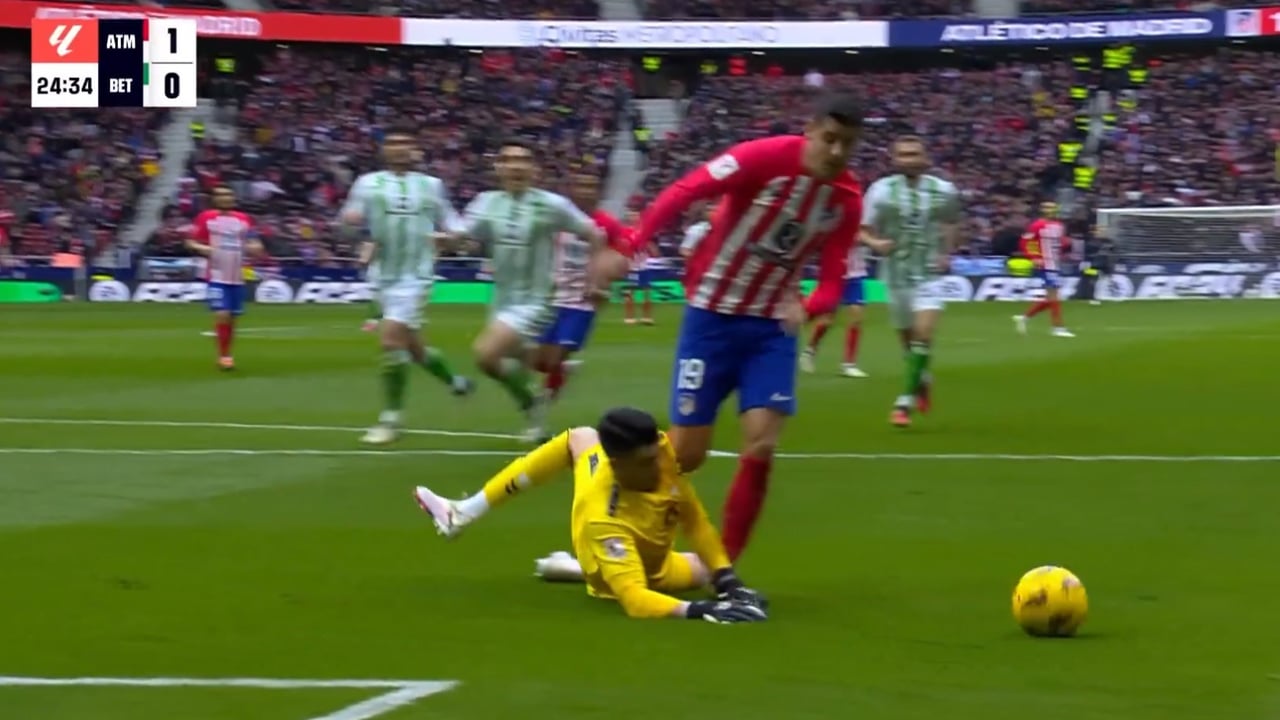 Todo se produjo en el minuto 25 de la primera parte cuando Álvaro Morata se plantó delante de Rui Silva, tras pase previo de Samu Lino y pérdida absurda de Rodri. El delantero madrileño regateó al meta portugués que apenas contactó con el atacante. Al principio se indicó fuera de juego, pero instado por el VAR, Soto Grado señaló la pena máxima. Un penalti que no fue ni a ver a la televisión que había en la banda del terreno de juego del estadio Metropolitano. Un lanzamiento desde los once metros que, posteriormente, fue fallado por Álvaro Morata ya que se lo detuvo Rui Silva con una gran estirada.