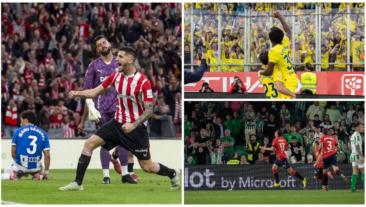 En las jornadas 36 y 37 (jueves y domingo próximos), el Real Betis visita al Rayo Vallecano y Atlético de Madrid antes de terminar LaLiga en el Benito Villamarín frente al Valencia CF. El Villarreal CF recibe este miércoles en La Cerámica al CD Leganés, se mide al líder FC Barcelona y acaba en casa contra el Sevilla FC. Por último, el Athletic Club irá el jueves al Coliseum Getafe y el domingo a Mestalla (Valencia), con el epílogo de la jornada 38 en San Mamés, también ante un Barça que ya dejó atada LaLiga y afrontará estas tres jornadas con suma tranquilidad; algo que no viene bien para los intereses de los verdiblancos.