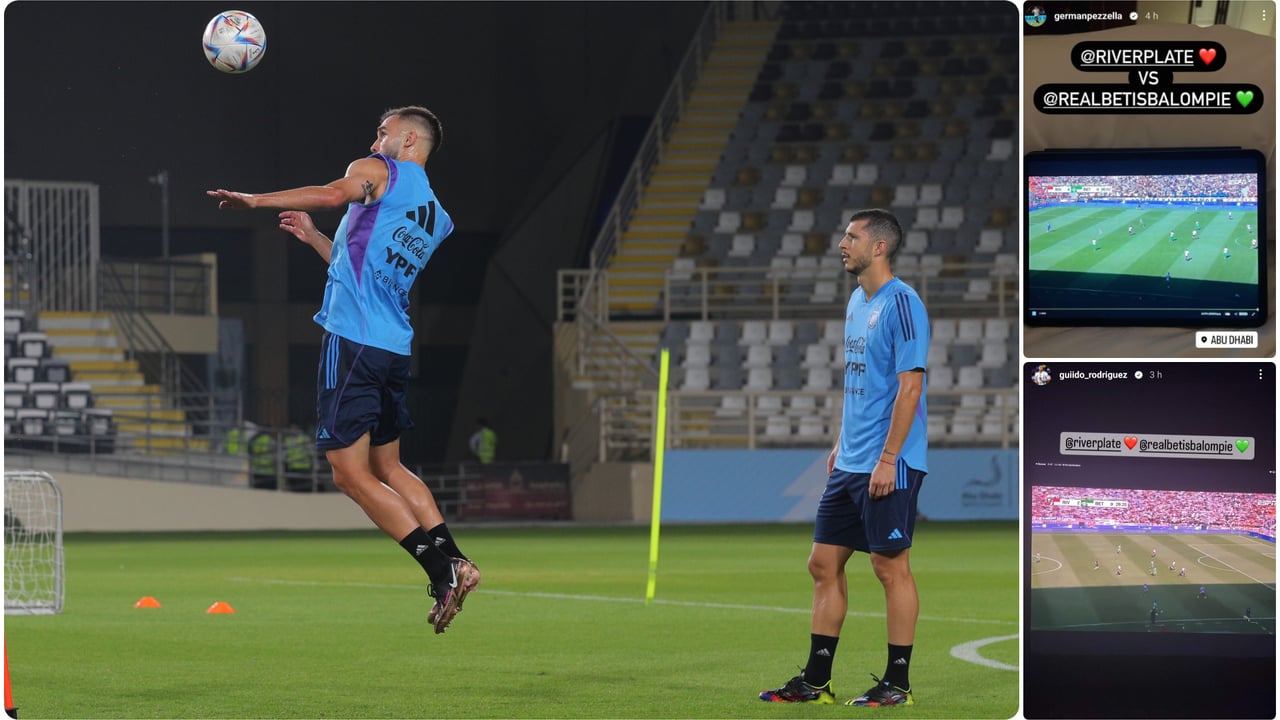Los 26 convocados por Lionel Scaloni para Qatar 2022 se van a ir sumando poco a poco, en función de los compromisos de sus equipos. Entre los primeros internacionales argentinos en llegar a Abu Dahbi están los dos representantes del Betis, el central Germán Alejo Pezzella y el mediocentro Guido Rodríguez, que además son canteranos de River Plate y, en parte, tenían el corazón un poco divido.