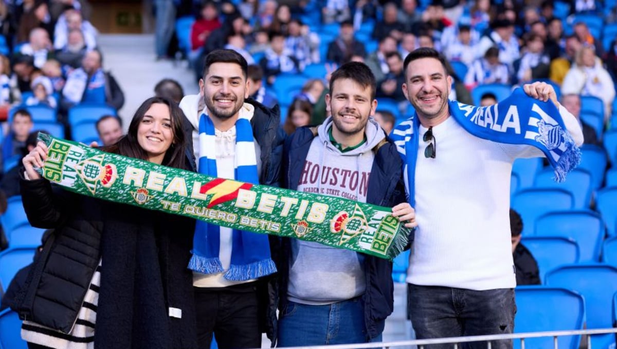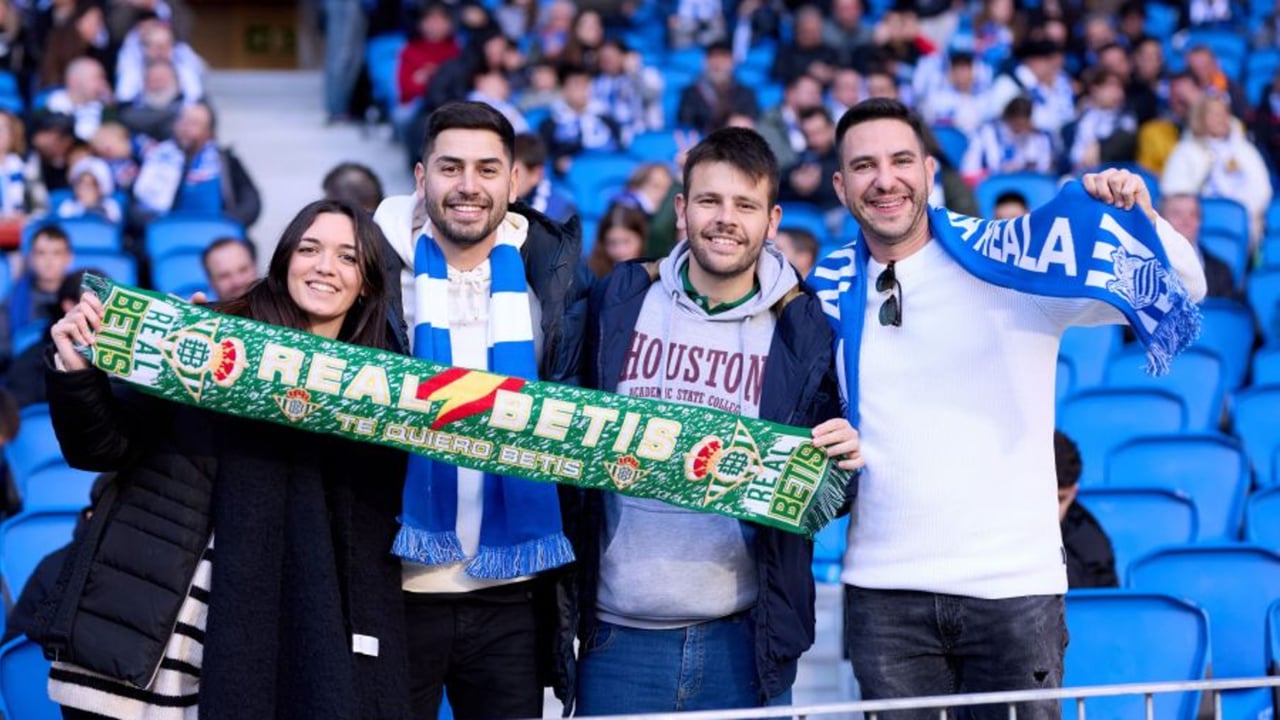 Aficionados de ambos equipos comparten este domingo la grada de Anoeta.LaLiga