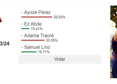 Aunque el tinerfeño sería para reforzar esa banda izquierda y en determinados momentos también la punta del ataque. Pero es que el segundo nombre que más gusta a la parroquia verdiblanca no sería para competir directamente con Ayoze, por lo que podrían jugar juntos formando dos bandas temibles. Con el 30% de los votos Adama Traoré también gusta y mucho a la afición heliopolitana. Ya más alejados opciones como la Samu Lino, propiedad del Atlético de Madrid que esta temporada ha jugado en el Valencia (19,71% de los votos) y Ez Abde, con el 10,41% y una opción mucho más cara si el Barcelona prefiere una venta como así parece.