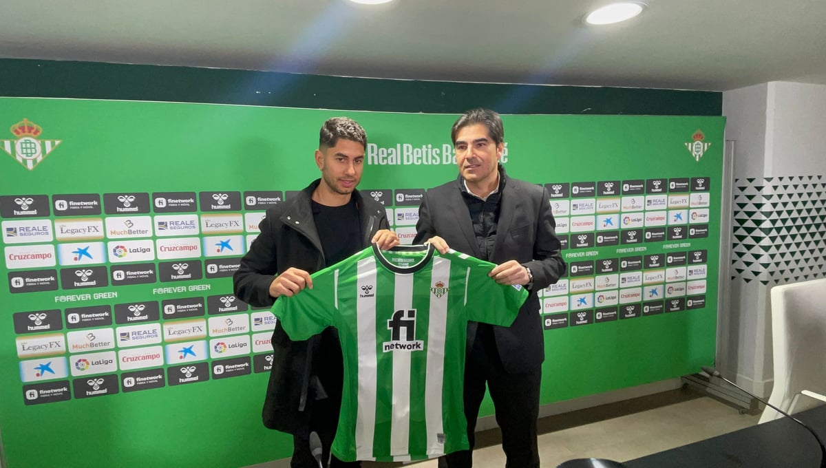 El nuevo refuerzo bético apareció sobre las 13:00 horas de este lunes en la sala de prensa del estadio Benito Villamarín acompañado del presidente, Ángel Haro -Antonio Cordón está de vacaciones tras el cierre del mercado- y posó sonriente junto a la camiseta con el dorsal '21' que hereda de Loren Morón, que ya estrenó el pasado sábado y que espera poder volver a lucir el sábado en la visita liguera a la UD Almería.