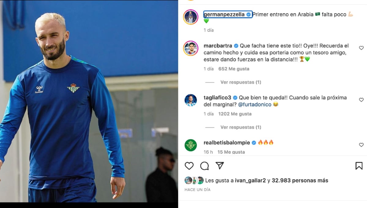 El central le ha escrito un comentario al argentino Germán Pezzella en su cuenta de Instagram alentándolo y pidiéndole que deje la portería verdiblanca a cero: "¡Qué facha tiene este tío! ¡Oye! ¡Recuerda el camino hecho y cuida esa portería como un tesoro amigo, estaré dándote fuerzas desde la distancia!".