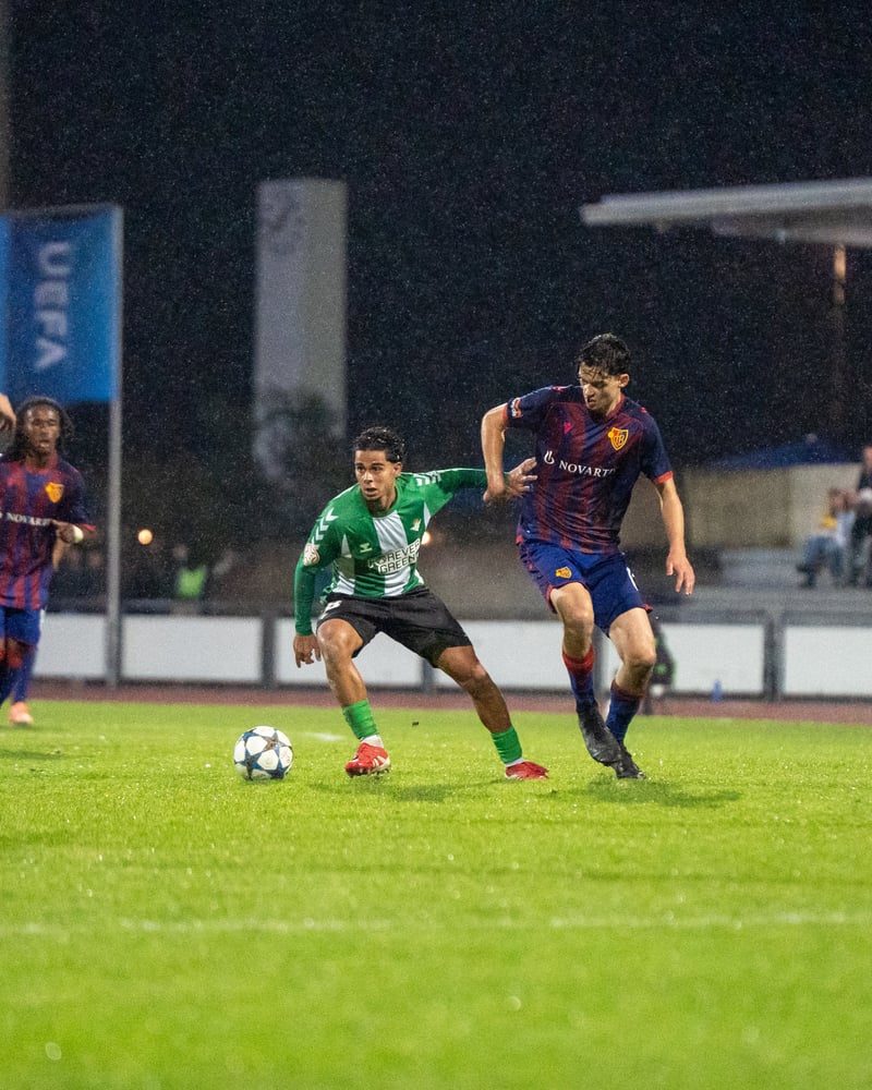 Incidencias: Encuentro correspondiente a la ida de la segunda ronda de la ruta de los campeones nacionales de la UEFA Youth League, disputado en el Leichtathletik Stadion St. Jakob de Basilea (Suiza) ante unos 4.000 espectadores, con una pequeña pero animosa representación de aficionados béticos.