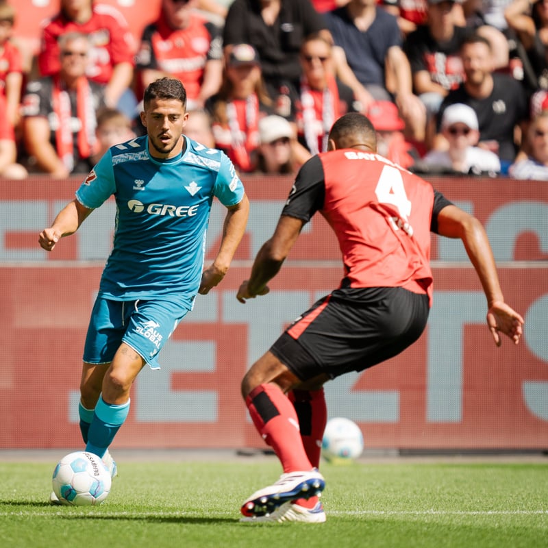 Con esta disposición, el Betis respondió inmediatamente al intento del Bayer de imprimir su ritmo y se adueño del balón merced a su presión alta y con Carvalho como vertebrador de una propuesta con las bandas como principal argumento ofensivo. Así, Chimy percutió por la zurda de manera constante y los verdiblancos gozaron de dos ocasiones, del propio argentino y de Fekir tras una magnífica maniobra.