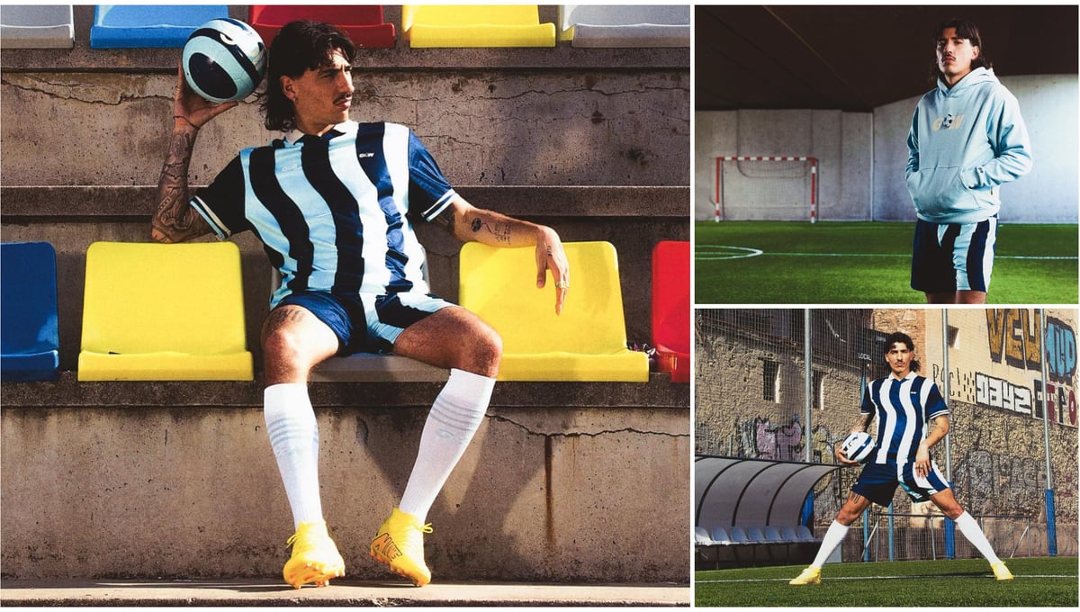 Un chándal de lana, jerséis de cremallera de dos tonos, sudadera con capucha y una especie de equipación de fútbol, con camiseta, pantalón corto y calcetines hasta la rodilla, son algunas de las prendas que ha puesto en el mercado esta marca estadounidense con Bellerín como principal reclamo mediático.