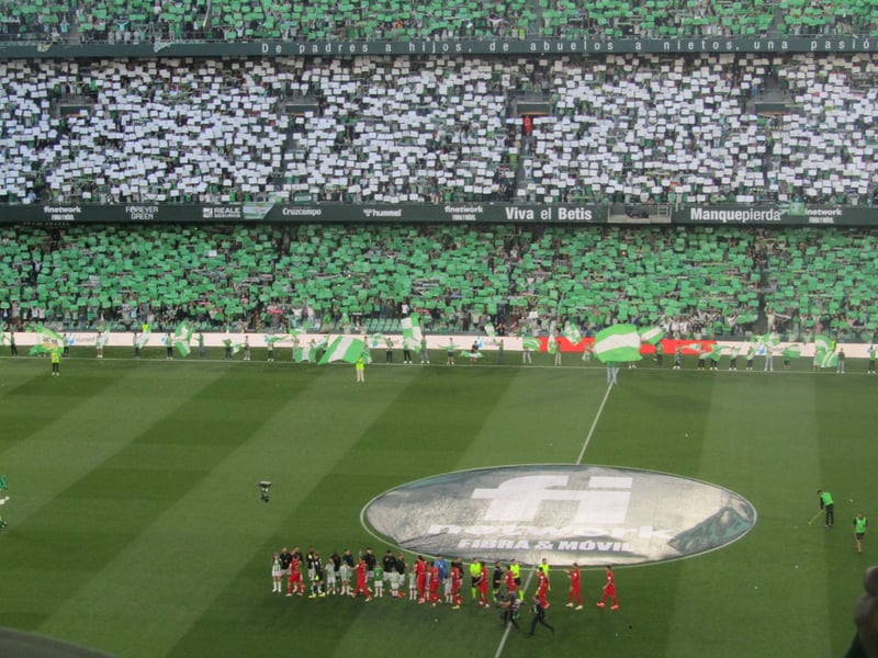 La hinchada verdiblanca recibió a su equipo con el himno a capela, como es tradicional, pero con un tifo enorme en la Grada de Gol Sur. Para su realización colaboraron Juan Miranda, 'Chimy' Ávila y Johnny Cardoso. El tifo fue acompañado de un mosaico, tal y como captaron las cámaras de ESTADIO Deportivo