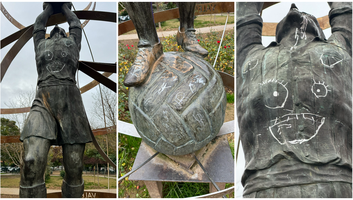 Aficionados a título particular y varias peñas se movilizan para lograr que el Ayuntamiento de Sevilla restaure el monumento a los campeones de LaLiga de 1935, que había sido vandalizado