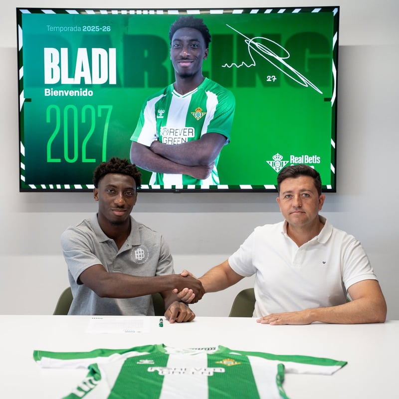 "Bladi, que será la tercera incorporación para las filas del Betis Deportivo (tras las del mediocentro Gnangoro Bouare -ya sonó en enero- y el central Moha Hamdoune), se pondrá a las órdenes de Javi Medina y reforzará la zaga del filial", añade el escrito oficial, publicado junto a una fotografía en la que se ve a Bladi posando junto a Miguel Calzado, coordinador de los escalafones inferiores del club de las trece barras, tras firmar su contrato en las oficinas de la Ciudad Deportiva Luis del Sol.