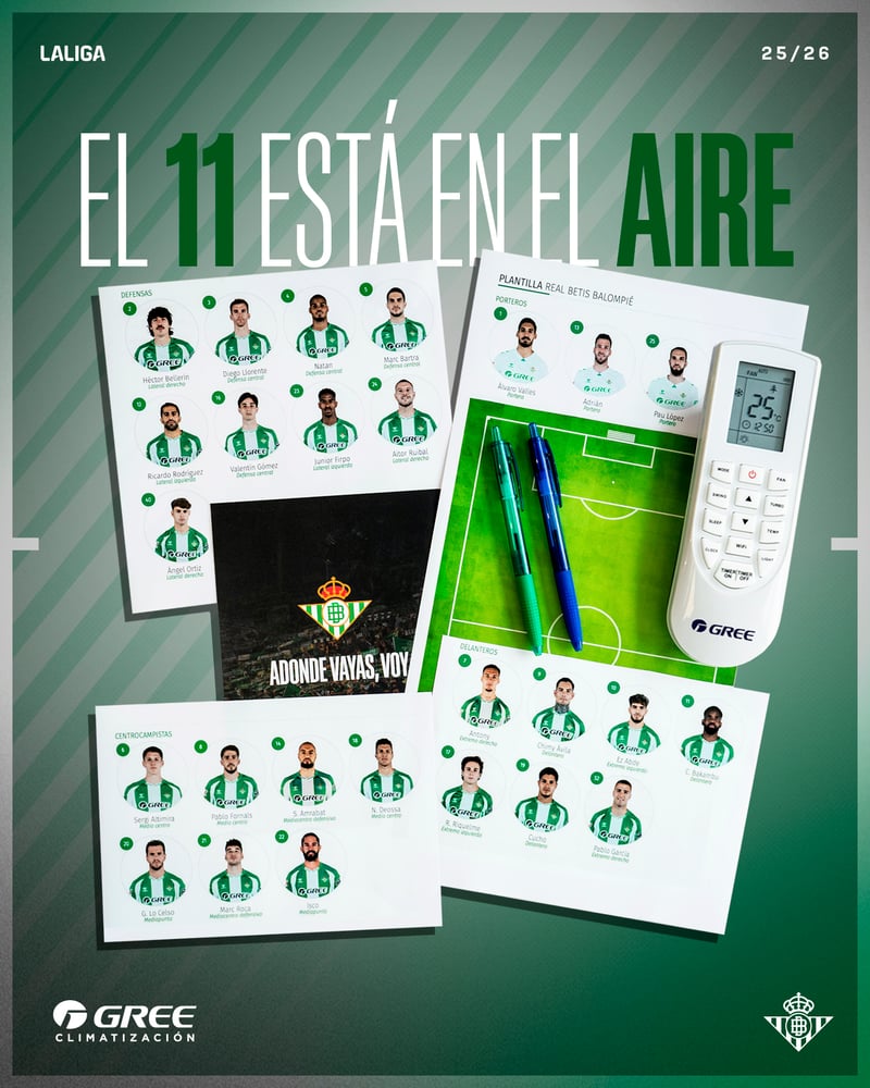 La lista actualizada al completo, con los 20 futbolistas convocados por Manuel Pellegrini para el Betis - Villarreal de esta misma noche está compuesta por los porteros Álvaro Valles, Adrián San Miguel y Pau López; los defensas Ángel Ortiz -vuelve tras lesión-, Aitor Ruibal, Marc Bartra, Diego Llorente, Natan de Souza, Valentín Gómez y Ricardo Rodríguez; los centrocampistas Sergi Altimira, Marc Roca, Pablo Fornals, Giovani Lo Celso y Dani Pérez; y los atacantes Antony dos Santos, Rodrigo Riquelme, Pablo García, Chimy Ávila y Cédric Bakambu.