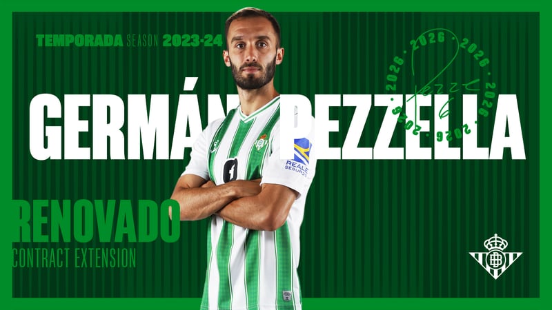 Germán Pezzella seguirá de verdiblanco. El Real Betis ha hecho oficial la renovación del central argentino hasta junio de 2026. Su contrato expiraba en 2025, por lo que añade en una temporada su vinculación con el conjunto verdiblanco. El capitán es uno de los pilares de Manuel Pellegrini esta temporada, donde lleva acumulados la cifra redonda de 30 partidos entre Liga, Europa League y Copa del Rey.