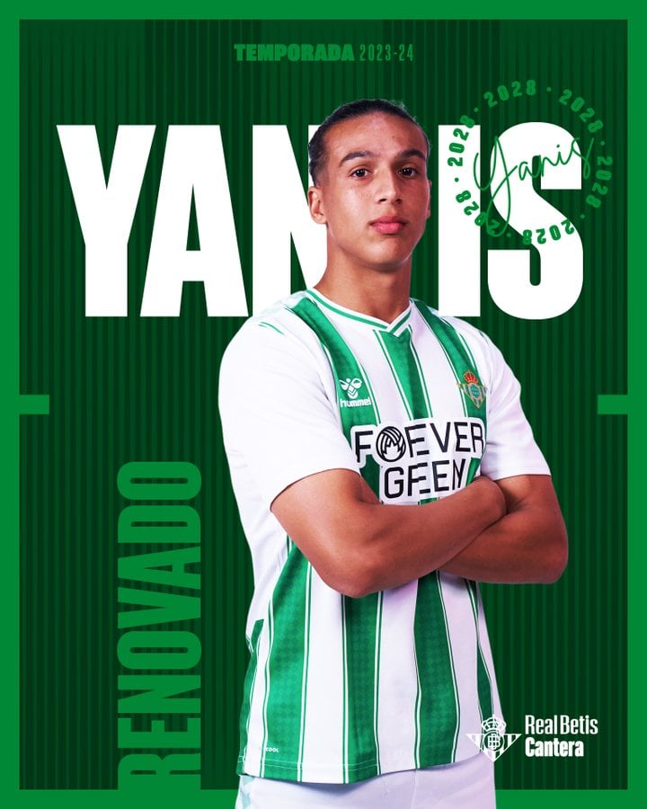 "Yanis (Sant Feliu de Llobregat, 5 de enero de 2005) ingresó en la cantera heliopolitana en el verano de 2021 procedente de la UE Sant Andreu. Su progresión en los escalafones inferiores del Real Betis Balompié está siendo constante y se ha visto reflejada en sus cifras goleadoras. Sin ir más lejos, en la presente temporada acumula 14 goles: 10 con el División de Honor Juvenil y 4 con el Betis Deportivo en Segunda RFEF. Además, su excelente rendimiento ha sido recompensado con la llamada de la selección española sub 19, con la que ya ha marcado dos dianas en sus dos primeras apariciones", destaca el Betis.