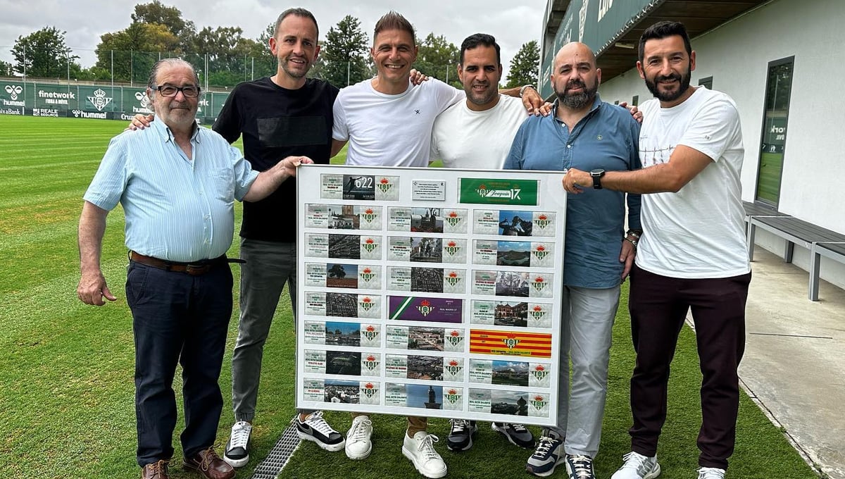 Los empleados del Betis regalaron a Joaquín un cuadro con todos los brazaletes de capitán que ha lucido en su última temporada en el Betis.@joaquinarte