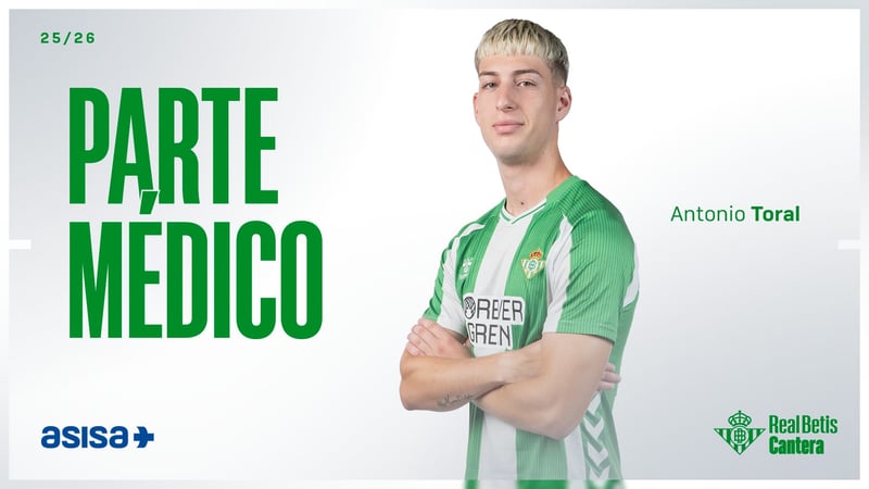 "El jugador verdiblanco Antonio Toral sufrió una lesión en su rodilla derecha durante el encuentro disputado el pasado fin de semana frente al FC Cartagena en casa. Tras las pruebas realizadas por los servicios médicos del Real Betis Balompié, se ha confirmado que el futbolista presenta una rotura de menisco y una rotura del ligamento cruzado anterior de la rodilla derecha", explica el parte médico difundido el viernes por los medios de comunicación de la entidad de las trece barras, que nada más arrancar esta 25/26 tuvo que pasar por este mismo trance con el internacional sub 19 Óscar Masqué.