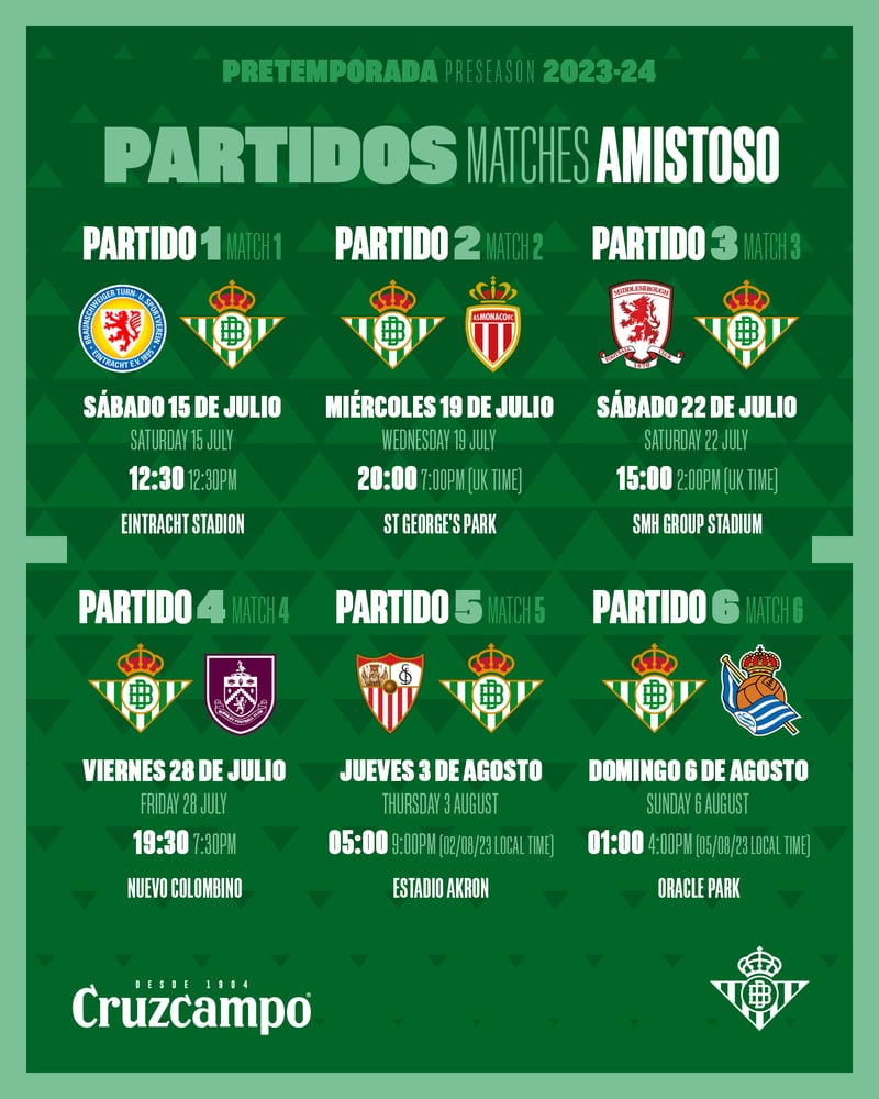 Calendario de pretemporada del Real Betis