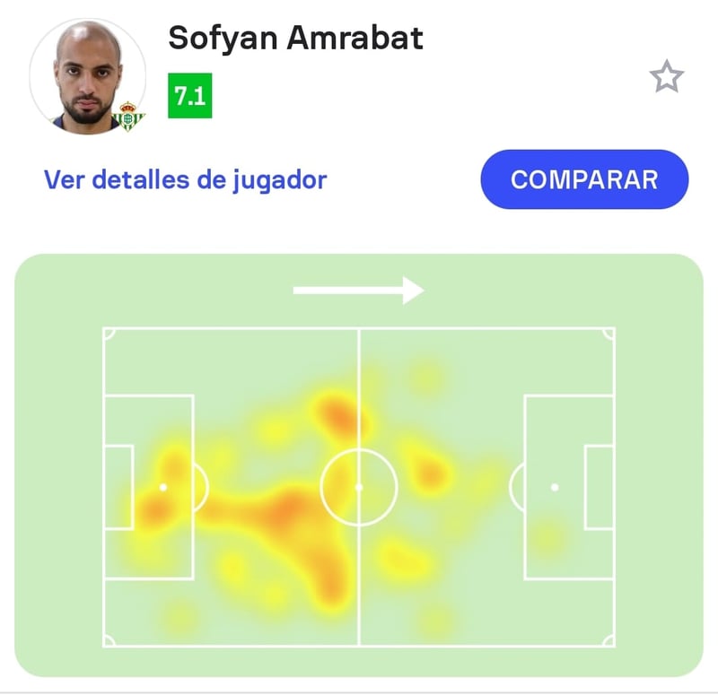 El nuevo '14' verdiblanco -dorsal heredado de William Carvalho- cubrió él solito tanto campo como podrían abarcar dos integrantes de un doble pivote, liberando así a Pablo Fornals y a Giovani Lo Celso para que pudiesen mejorar su participación en zonas ofensivas. El futbolista nacido en Huizen (Países Bajos) tuvo un efecto inmediato en el equilibrio del Betis, ya que lo hizo todo bien con balón y sin él. En 66 toques de balón, promedió un 96 por ciento de acierto en la entrega en corto (48 pases buenos de 50), con un 100% en desplazamientos en largo (3/3), y realizó dos disparos lejanos; mientras que ganó 7/12 duelos individuales, cuatro de seis a ras de césped y tres de seis aéreos. Un despeje, un tiro bloqueado, múltiples recuperaciones, sólo dos pérdidas y una única falta cometida completan un encuentro más que notable del internacional marroquí. La primera impresión no ha podido ser mejor.