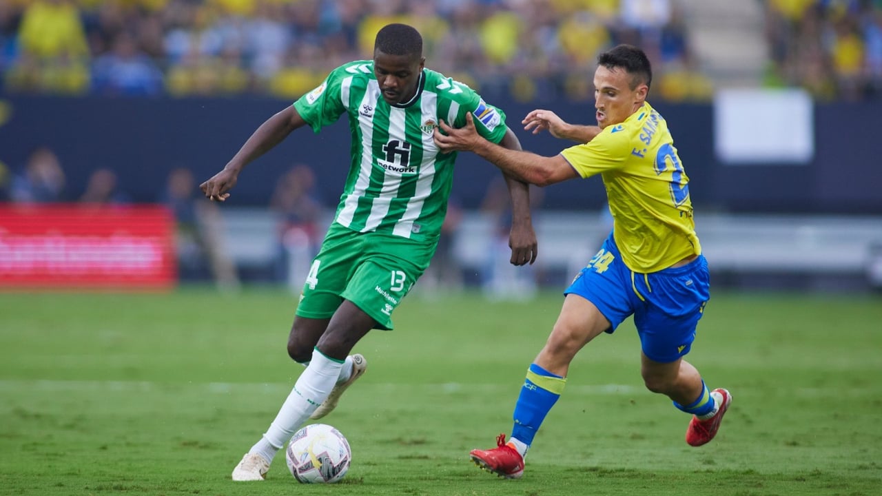 Una novedad muy vistosa en el Real Betis para enfrentarse este miércoles contra el Cádiz CF. Tenía que ver con la vestimenta que han lucido los heliopolitanos en el Estadio Nuevo Mirandilla, donde no tenían cabida ni la segunda equipación (con camiseta azul a franjas horizontales en dos tonalidades y pantalón blanco) ni la tercera (naranja y verde), que no se habrían distinguido lo suficiente de la auriazul de su anfitrión. Pero, por la misma razón, el negro de las calzonas, recuperado la campaña pasada para la Copa del Rey que terminaría llevando a sus vitrinas el cuadro hispalenses el pasado 23 de abril e instaurado como oficial para la primera de la 22/23, se diferenciaba menos de lo deseado de la ropa de los hombres de Sergio González, pues ambos cubrirían sus piernas con tela oscura.