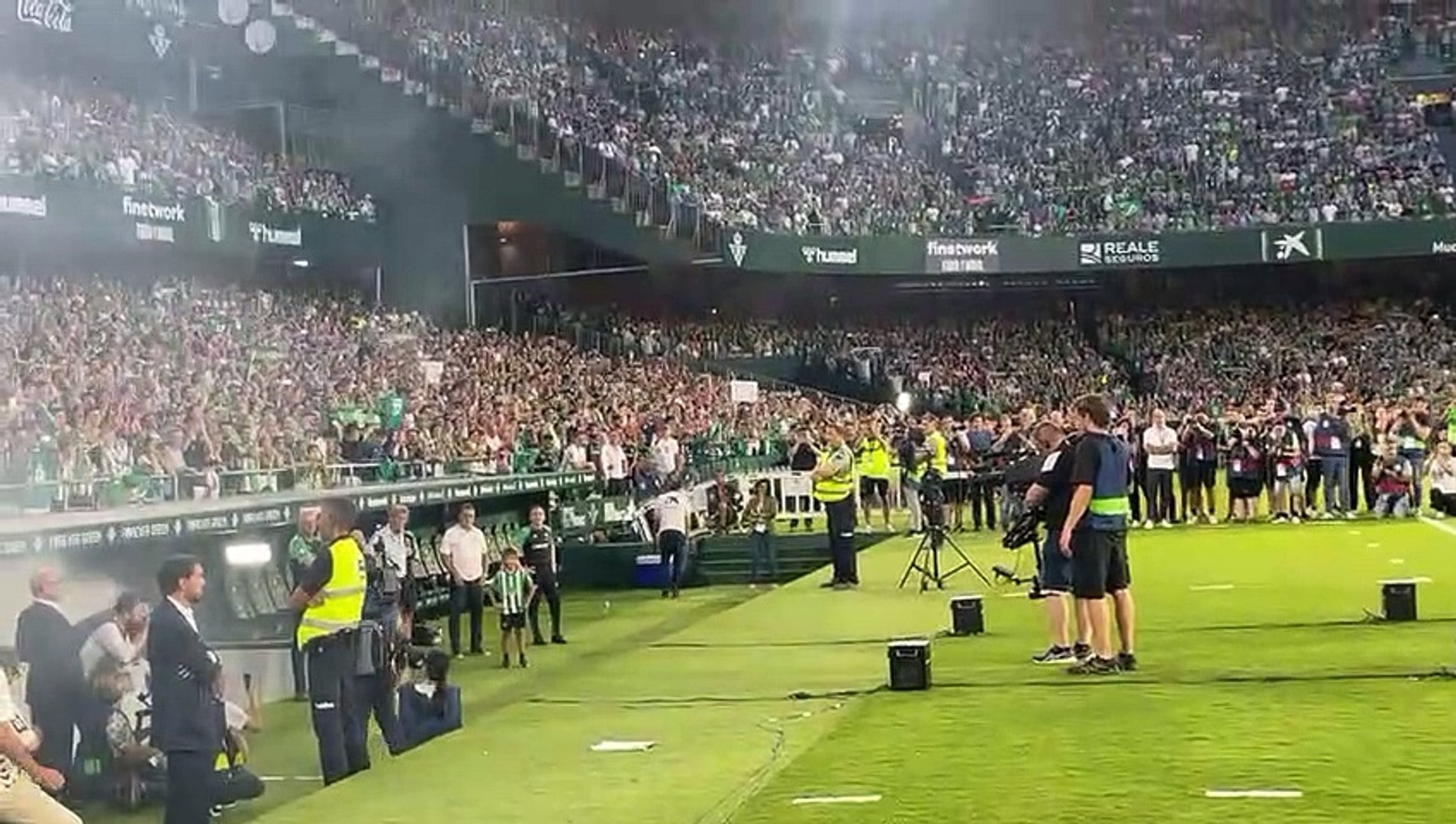 Hay 59.621 espectadores, el récord en toda la historia del Estadio Benito Villamarín. Vaya pasote.