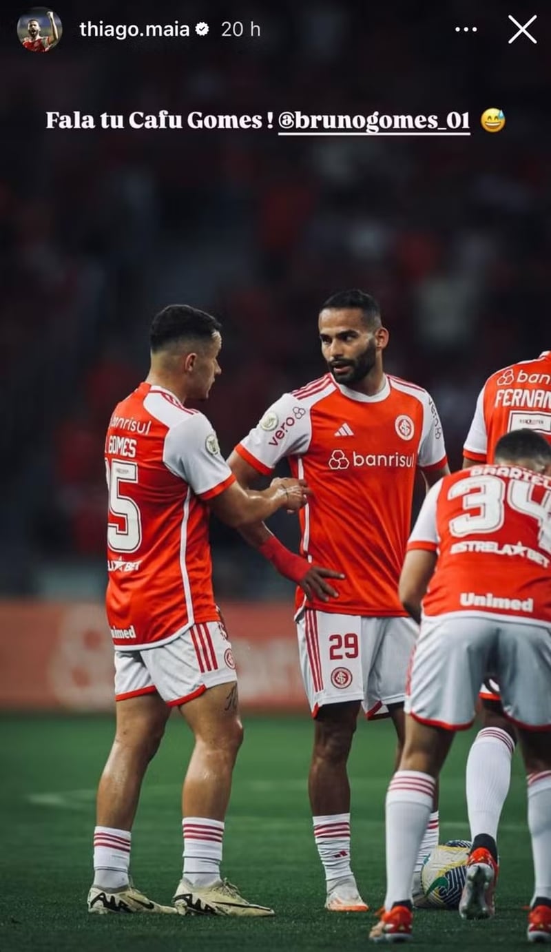 Y es que Bruno Gomes ha comenzado a jugar de lateral derecho debido a los problemas que estaba teniendo Internacional de Porto Alegre en dicha posición. Ha brillado y ahora no hay quien le quite la titularidad. Él ha afirmado que juega en los dos puestos indistintamente mientras soporta bromas de sus compañeros como le ha ocurrido con Thiago Maia que lo llama Cafú Gomes, en referencia al mítico lateral derecho brasileño. "Vivo el momento. He podido jugar bien y no quiero dejar mi puesto. Si viene más gente les diré que soy centrocampista, pero también lateral".