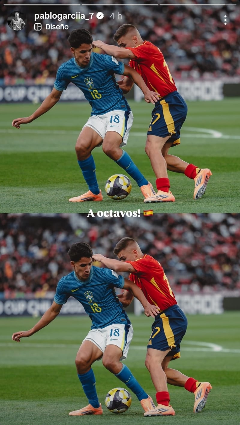 El día anterior, Pablo García volvió a resultar decisivo para España, ya que dio la asistencia del gol del triunfo ante el Brasil (1-0) anotado por Iker Bravo. El de Alcosa fue titular por segundo encuentro seguido y no se marchó del campo hasta el sexto minuto de añadido, cuando dejó su sitio a Adrián Liso. Venía de lucirse con un golazo en el 2-2 contra México de la segunda jornada del Mundial, cuando Paco Gallardo le dio 84' antes de relevarle también por el delantero del Getafe CF. En el debut, con derrota por 2-0 frente a Marruecos, el canterano verdiblanco fue suplente y entró en el 63' por Peio Canales (Racing Santander).
