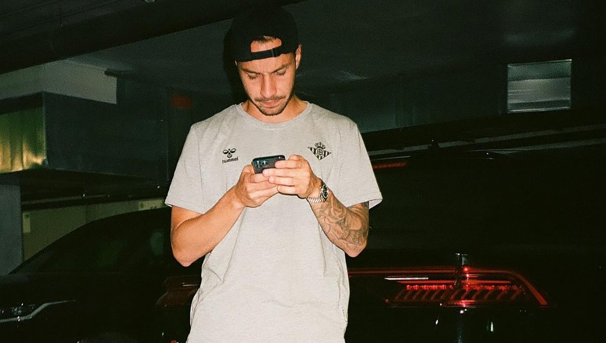 Loren mira su teléfono desde el parking de la ciudad deportiva del Betis.@lorenmg16