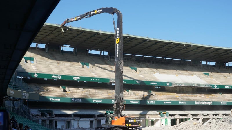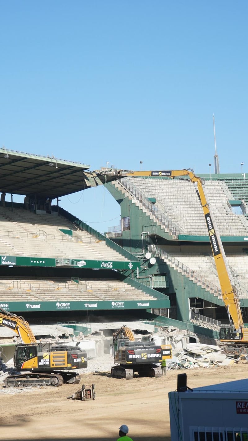 Bocado a bocado, va desapareciendo la que ha sido la casa del Real Betis desde 1929. En la mañana de este martes, 16 de septiembre de 2025, ha comenzado el derribo de la cubierta de la grada de Preferencia del Benito Villamarín, tareas que avanzan a gran nivel con varios 'diplodocus' sin parar de abrir y cerrar la boca. En el club verdiblanco estiman que este derribo estará completado en una semana, mientras que noviembre es la fecha estimada para contemplar el derribo total de este graderío que comenzó el pasado 9 de septiembre. Las imágenes, captadas por la cámara de Iván Díaz para ESTADIO Deportivo no son aptas para corazones sensibles en estos años que quedan por delante con la obligada convivencia entre la nostalgia por lo que se va y la ilusión de lo que viene.