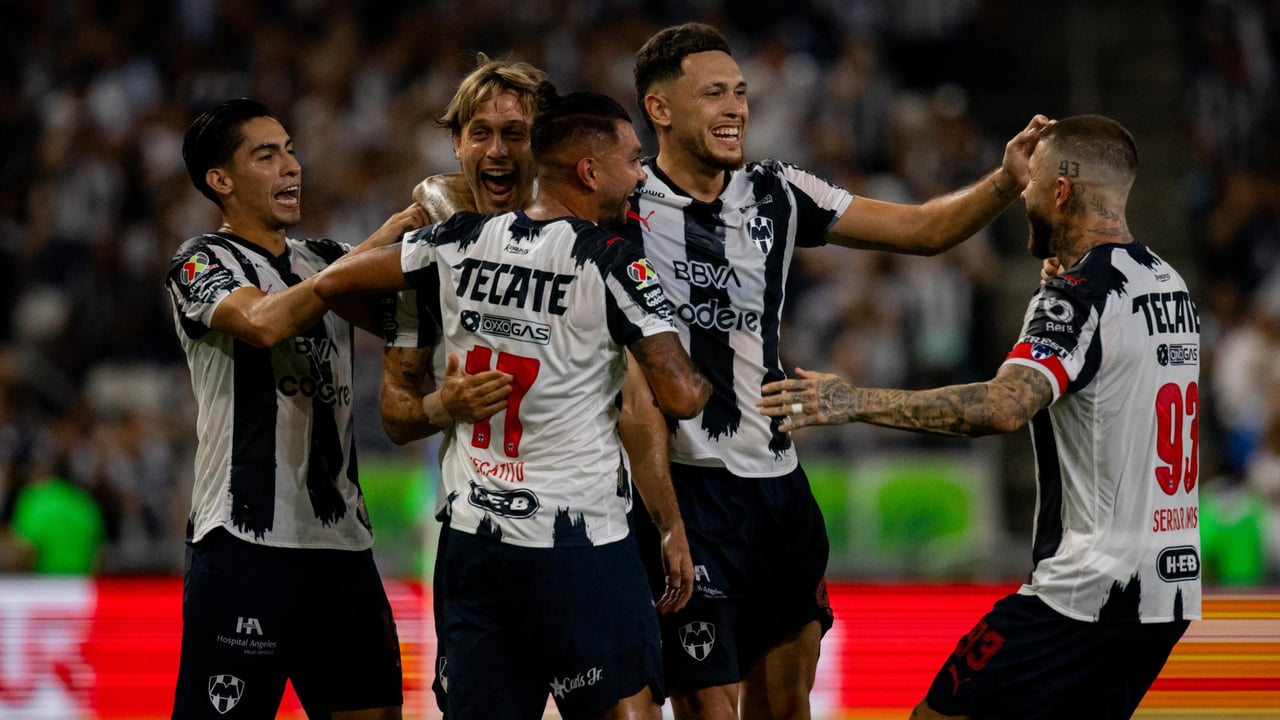 Corona, Ocampos y Sergio Ramos felicitan a Canales tras su soberbio golazo al Necaxa. @Rayados