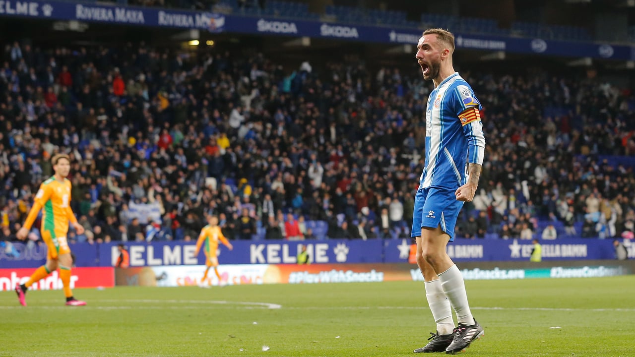 El mediocentro balear celebra el triunfo 'perico' ante el Betis el curso pasado en el RCDE Stadium.UES