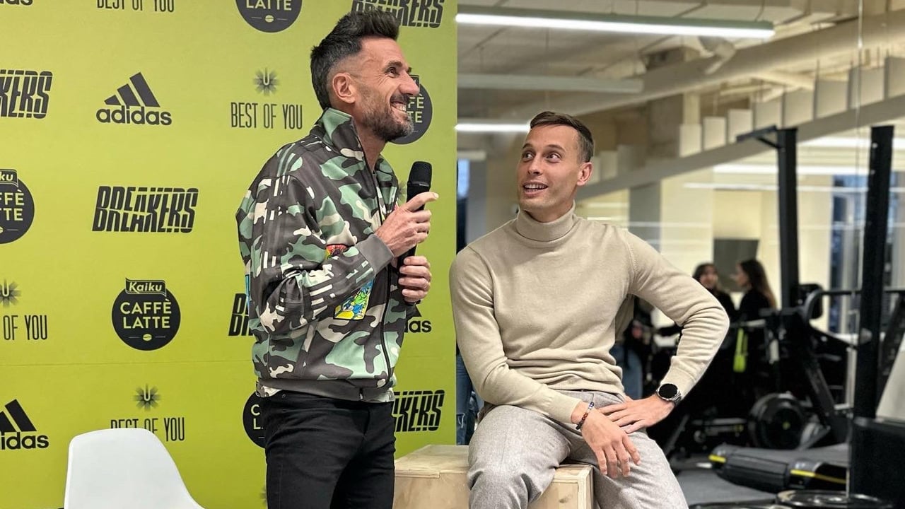 El atleta Chema Martínez, junto al cántabro en la inauguración de una nueva clínica de fisioterapia en Valencia.@chemitamartinez