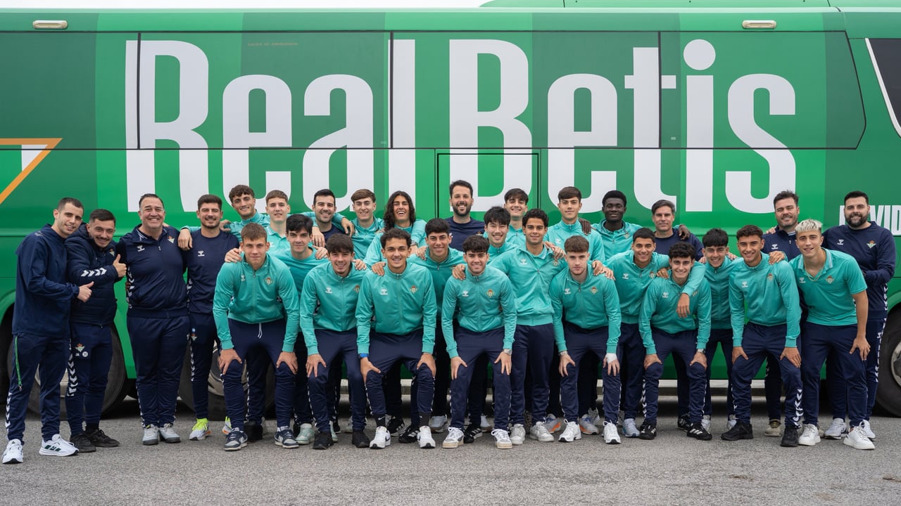 El Juvenil A del Betis posa para una foto de familia justo antes de viajar a Madrid.Real Betis