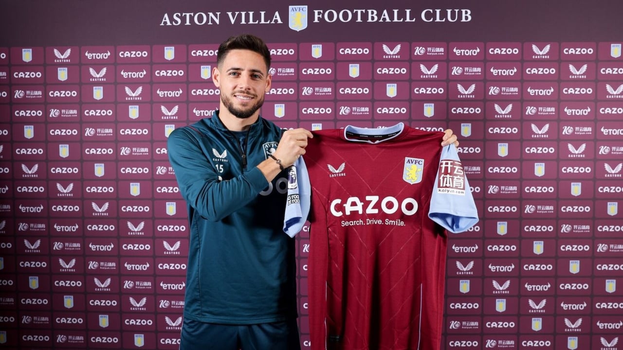 El carrilero zurdo posa con la que será su nueva camiseta en la Premier League.AVFC